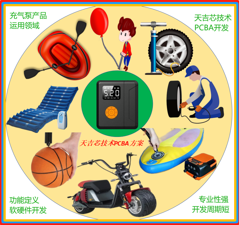 便攜式多功能新能源車應急啟動電源充氣泵PCBA方案開發-天吉芯技術king-chip